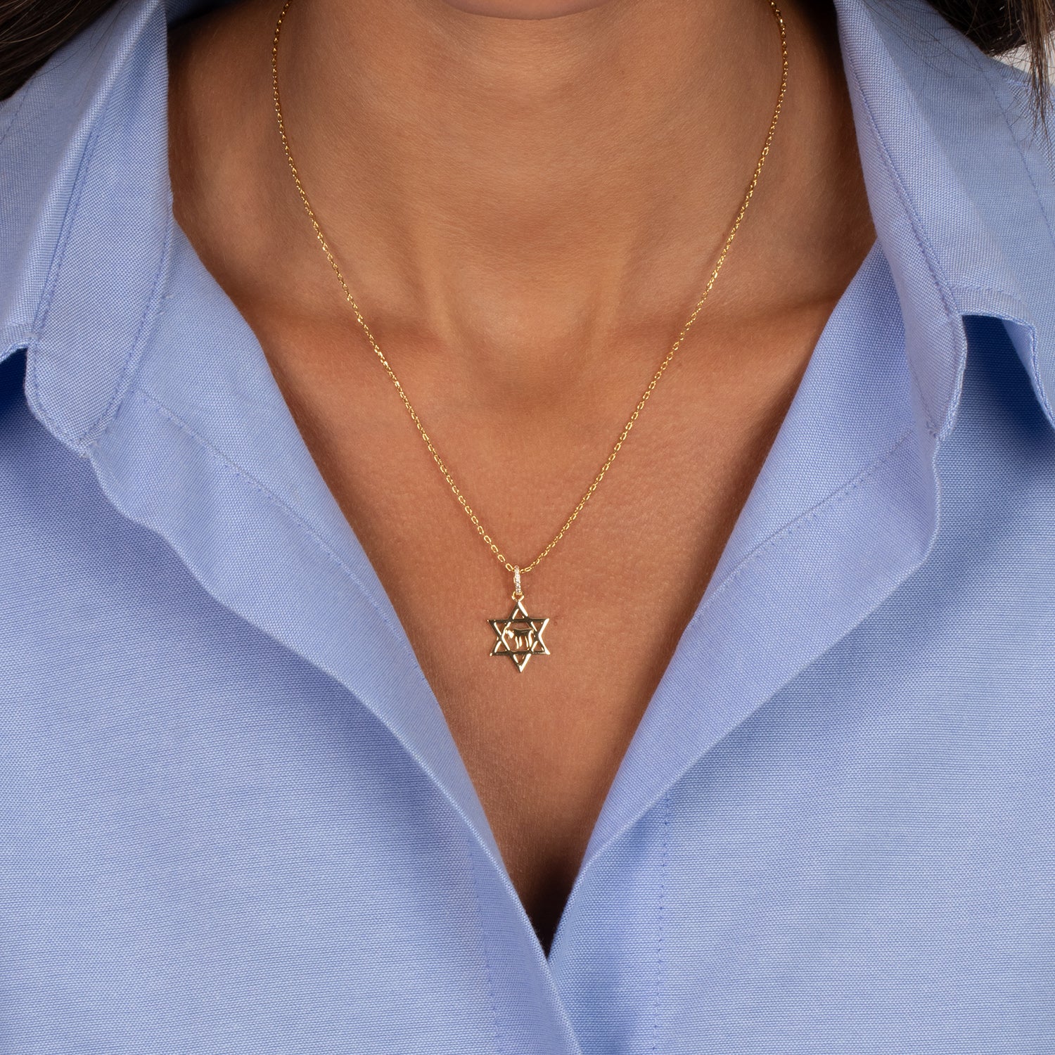 Let your layers lead with the Star of David “Chai” Pendant Necklace by Adina Eden, a statement-making Necklace. With graceful detail and bold tone options, this women's fashion necklace is offered in Gold. For days that start early and end late, this detail adds the right touch of style to any outfit without weighing down your vibe. Combine this gold plated necklace with pieces from our Choker Necklaces collection for a timeless, layered effect. A timeless touch you'll find new ways to style every season.