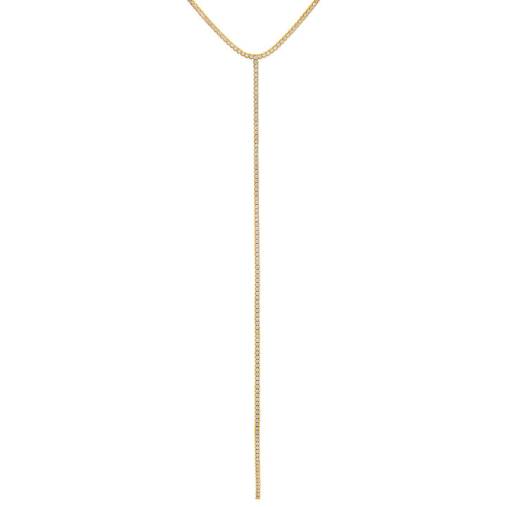 Rock a dazzling take on a true classic in Adina Eden's Tennis Lariat Necklace, expertly crafted in sterling silver or gold-plating and sparkly CZs. Wear this gem to take your tennis and chain layered look to the next level of style.