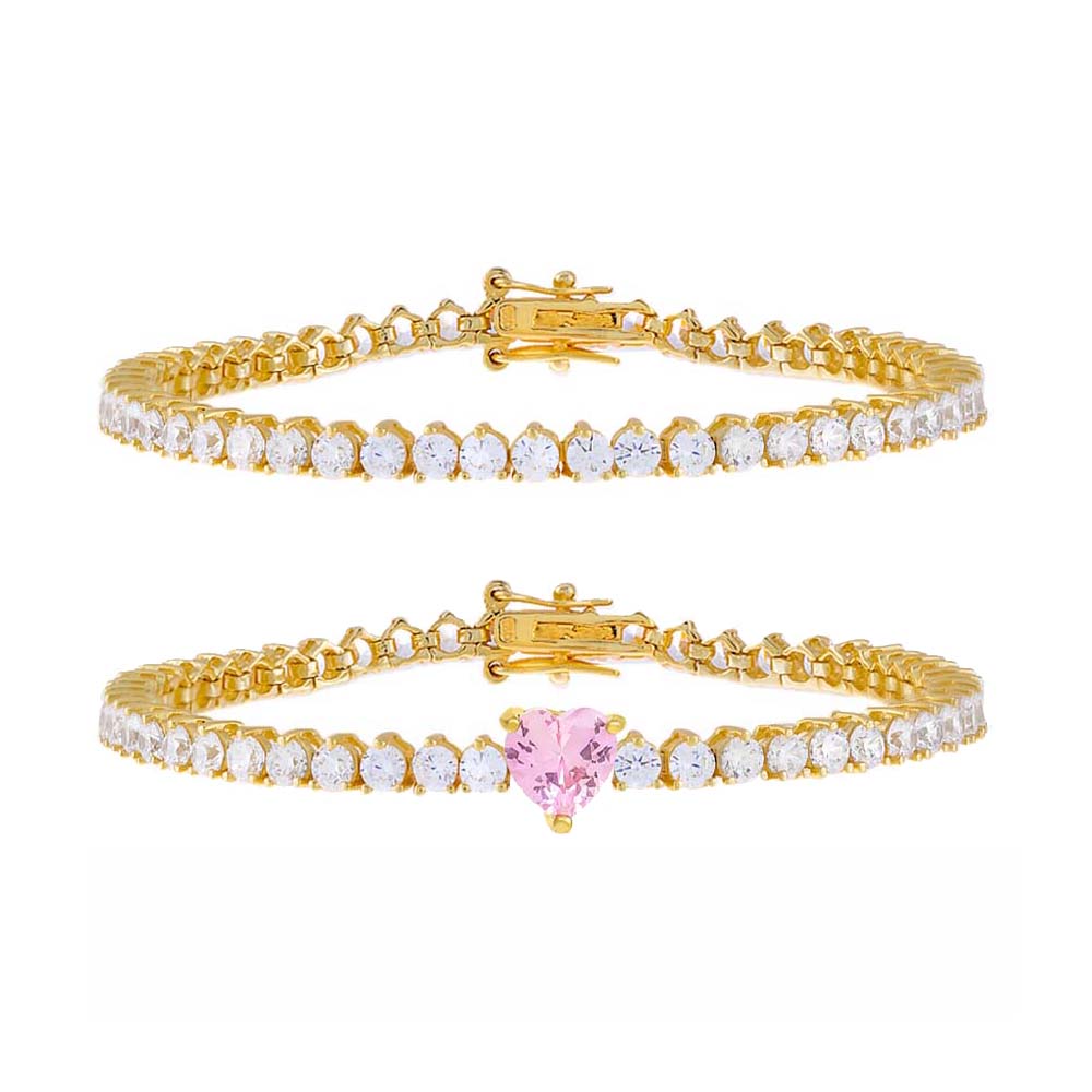 • This Set Features The Three Prong Tennis Bracelet ($125) & Colored Heart Tennis Bracelet ($125)