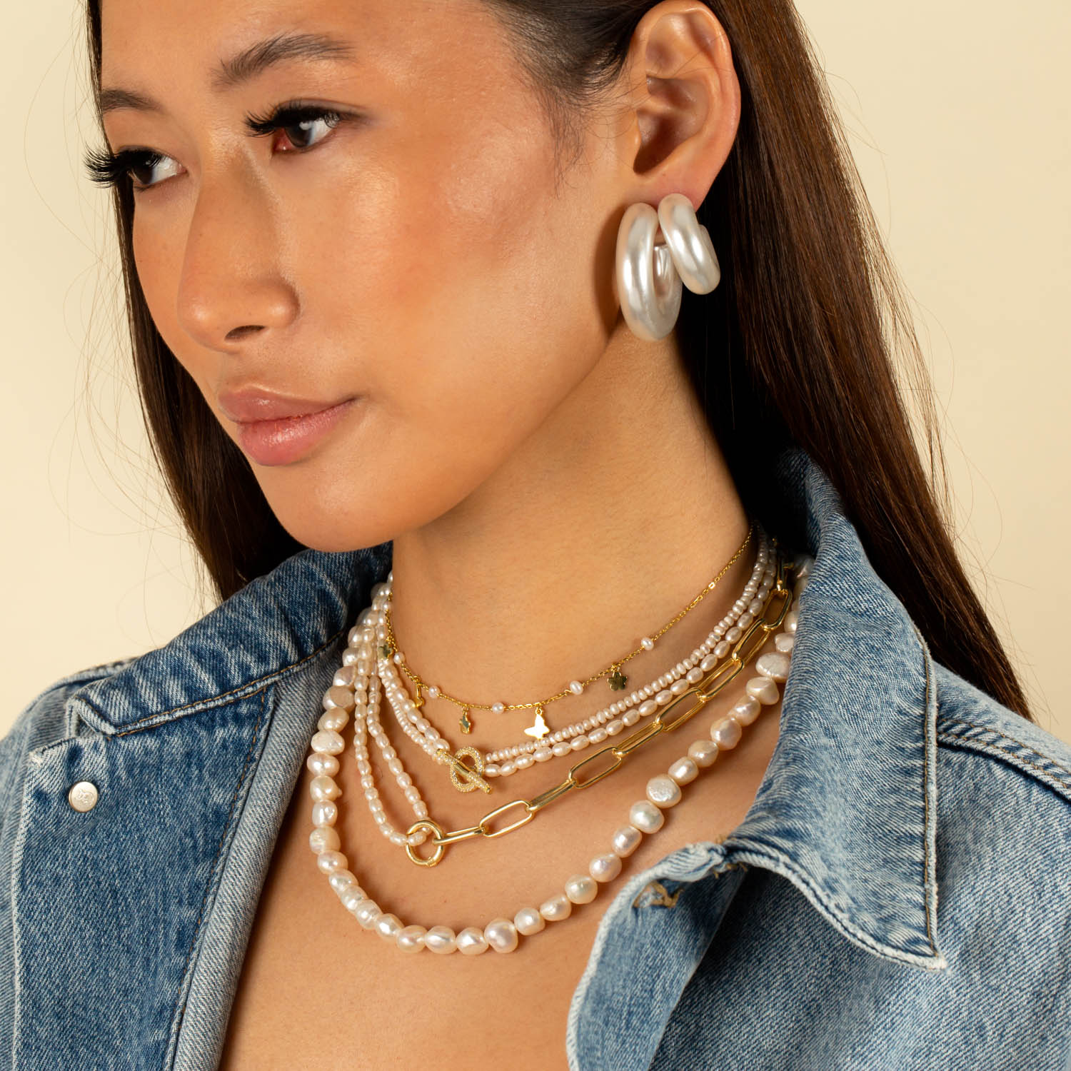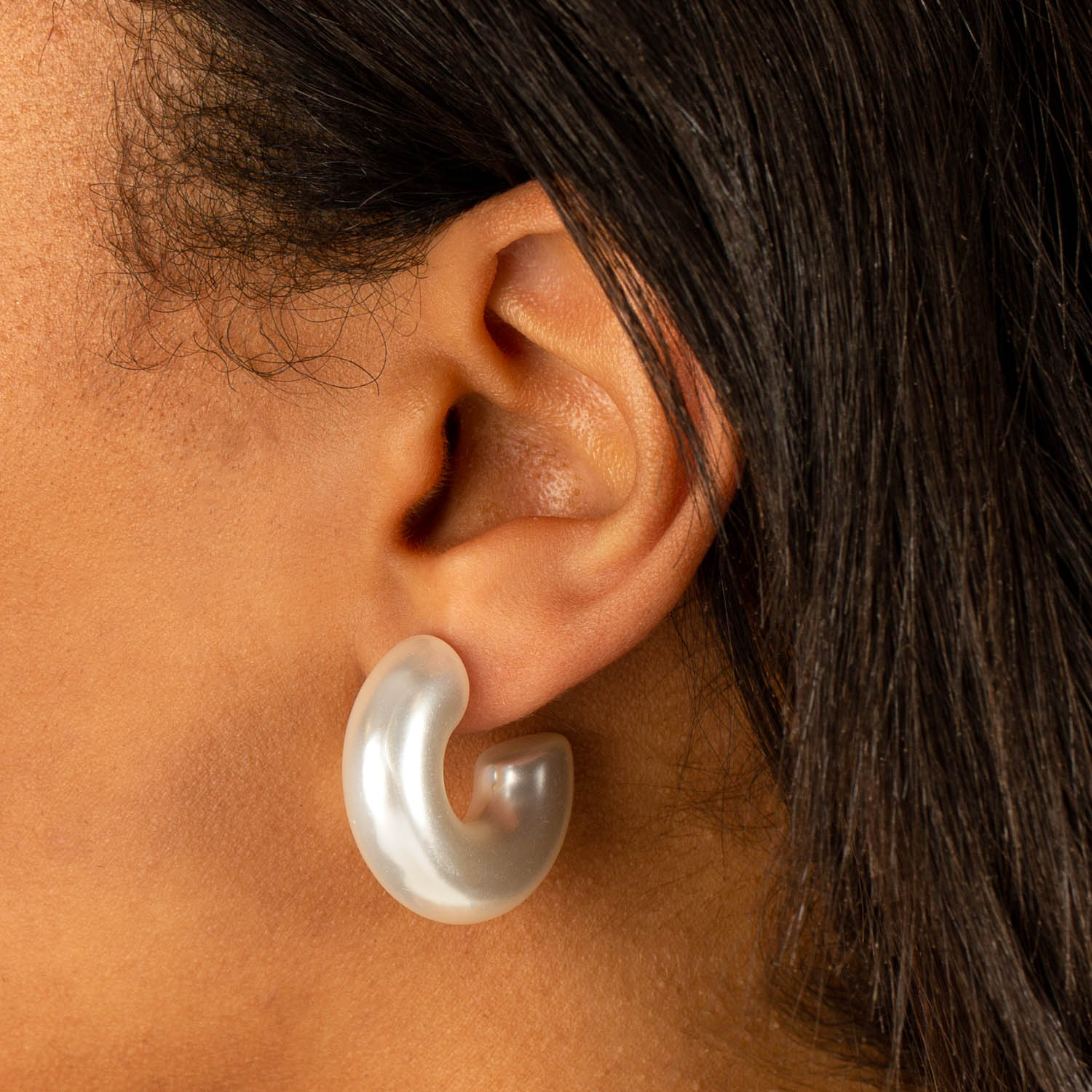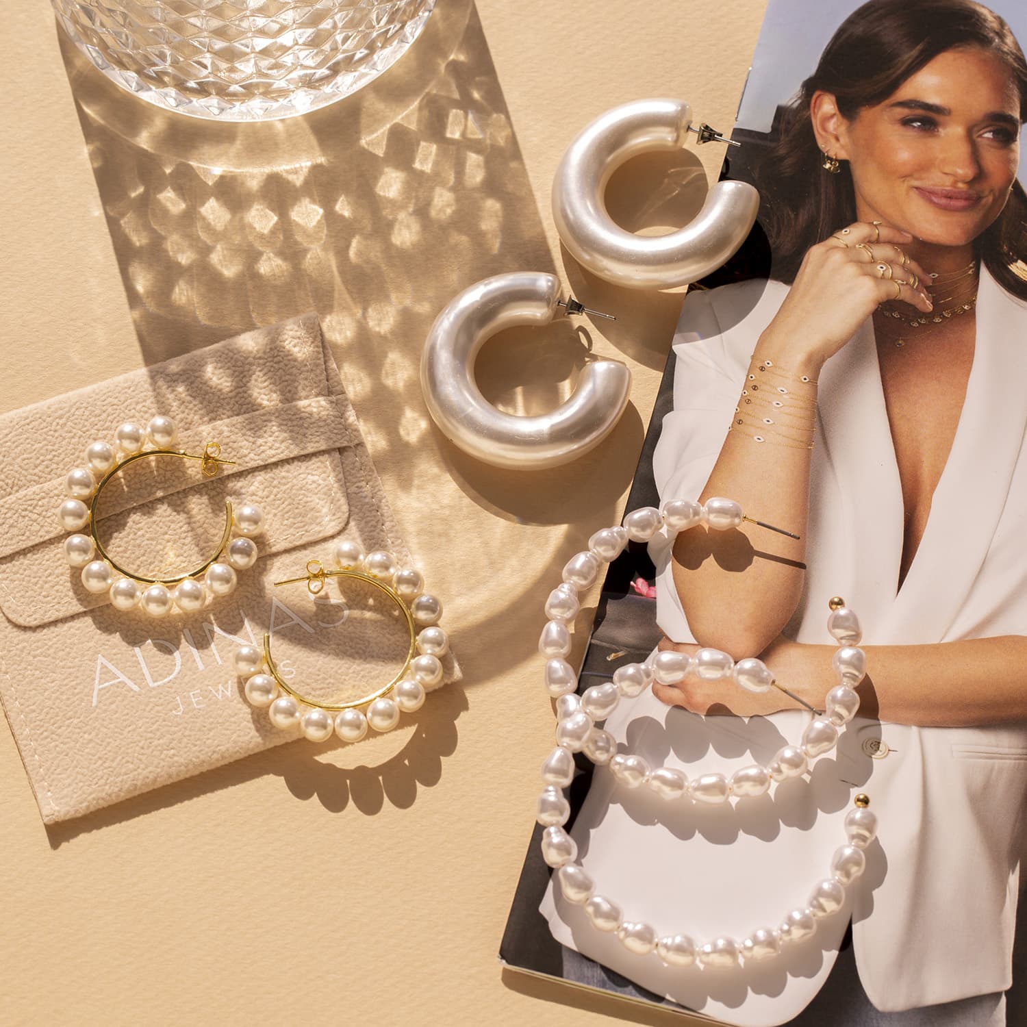 Combine timeless style and contemporary design in one with Adina Eden's Chunky Pearl Hoop Earring, featuring a chicly chunky open hoop adorned in a lustrous pearl white finish. Perfect for Sunday brunches with friends or virtual meetings with the team, this gem is a versatile wonder of style. Pair it with your favorite hoops or huggies for an elegant yet cool vibe.