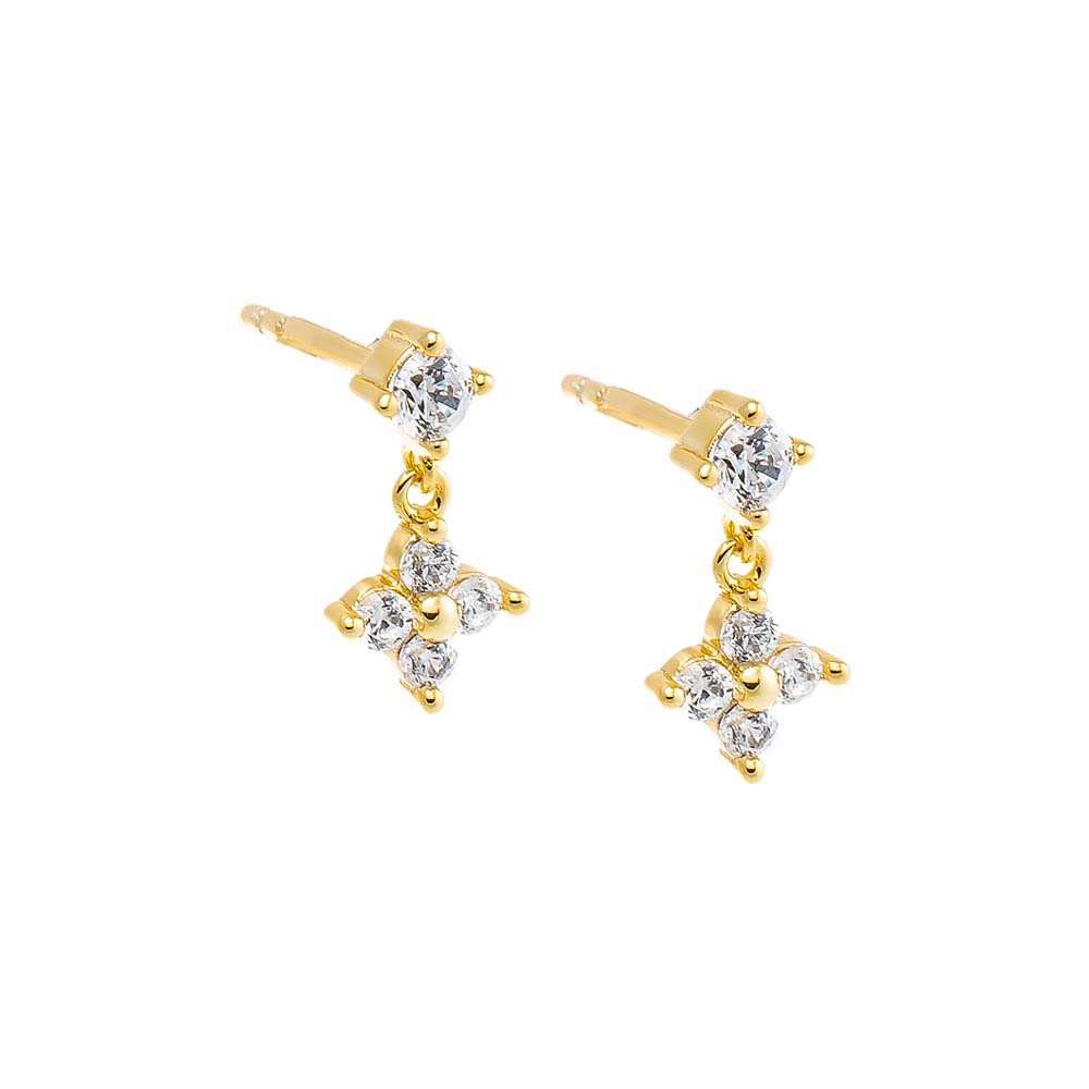 The Adina Eden Tiny CZ Flower Shaker Stud Earrings are a charming and delicate accessory, crafted from high-quality brass and plated in 14K gold. Each earring features a 5mm flower design adorned with clear CZ stones that shake with movement, adding a playful sparkle to the piece. With a length of 12mm and secured with a post back, these earrings offer a refined yet eye-catching touch, perfect for everyday wear or special occasions. These flower-shaped studs bring a touch of whimsy and elegance to any jewelry collection.