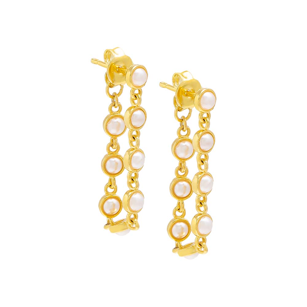 Tiny Pearl Chain Front Back Stud Earring