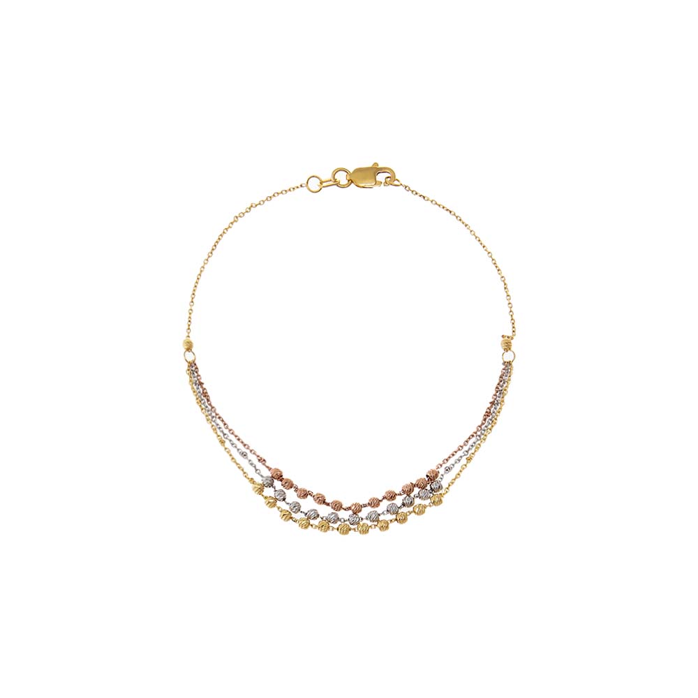 Tri-Color Beaded Bracelet 14K