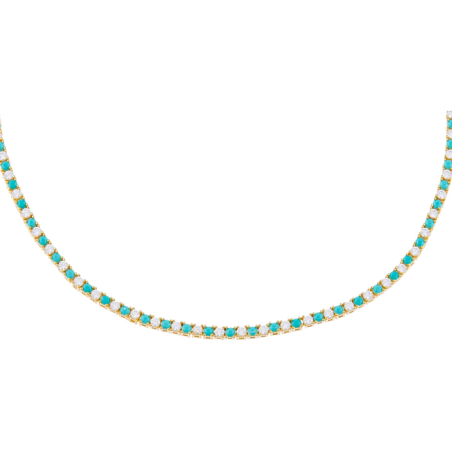 Show off an exquisite makeover of the timeless tennis chain with Adina Eden's Turquoise CZ Tennis Anklet, featuring an alternating pattern of glittery clear and turquoise CZ stones set into a delicate tennis choker. Pair this gem with a couple of basic chains and a silky white blouse for a chic and heavenly look.