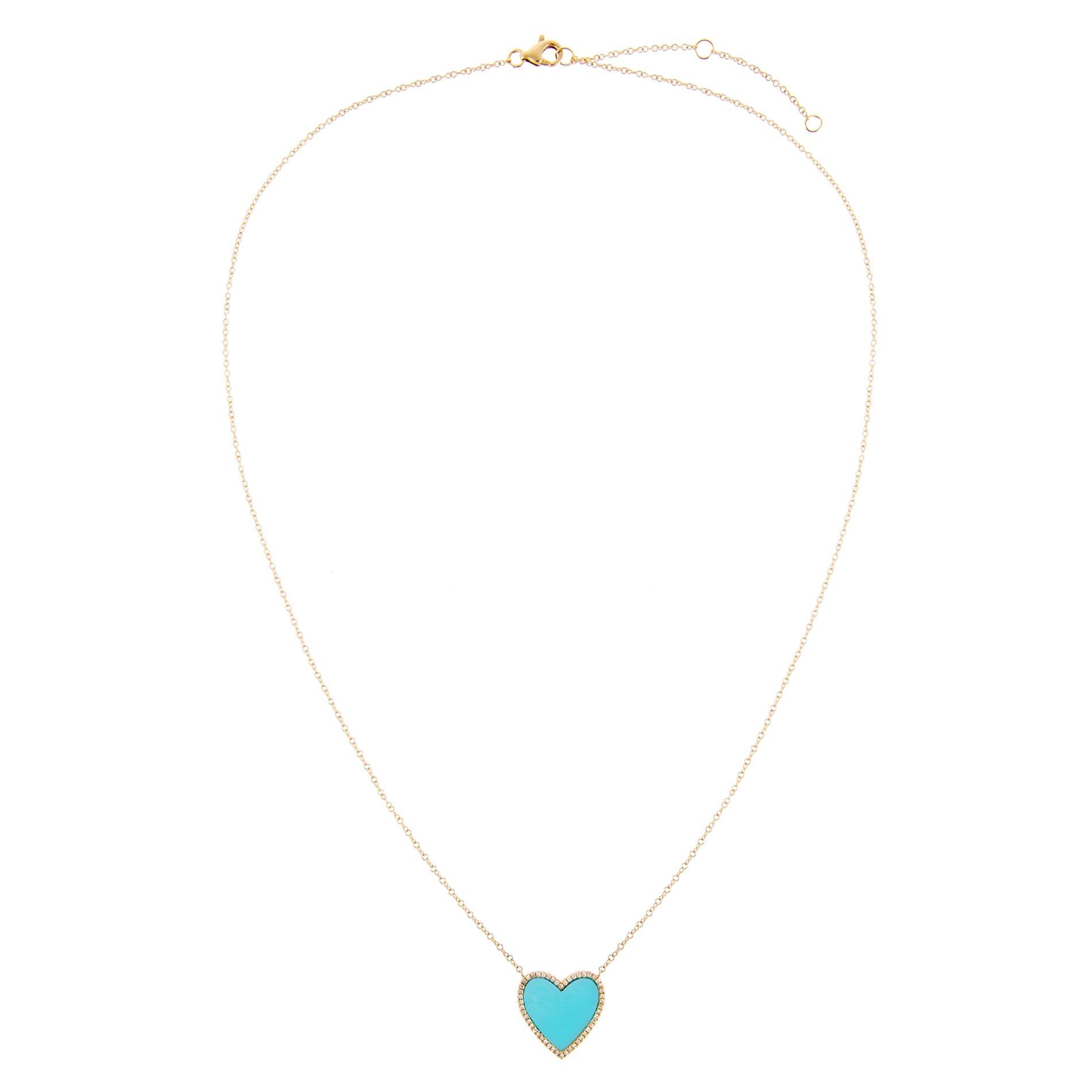 Show off your colorful personality with Adina Eden's Turquoise Heart Necklace. Diamonds immediately catch the eye in this chicly designed brightly-colored heart pendant as it hangs on a modest 14K gold chain. Layer in a pendant necklace or two and wear with a sundress for a truly sweetening look.