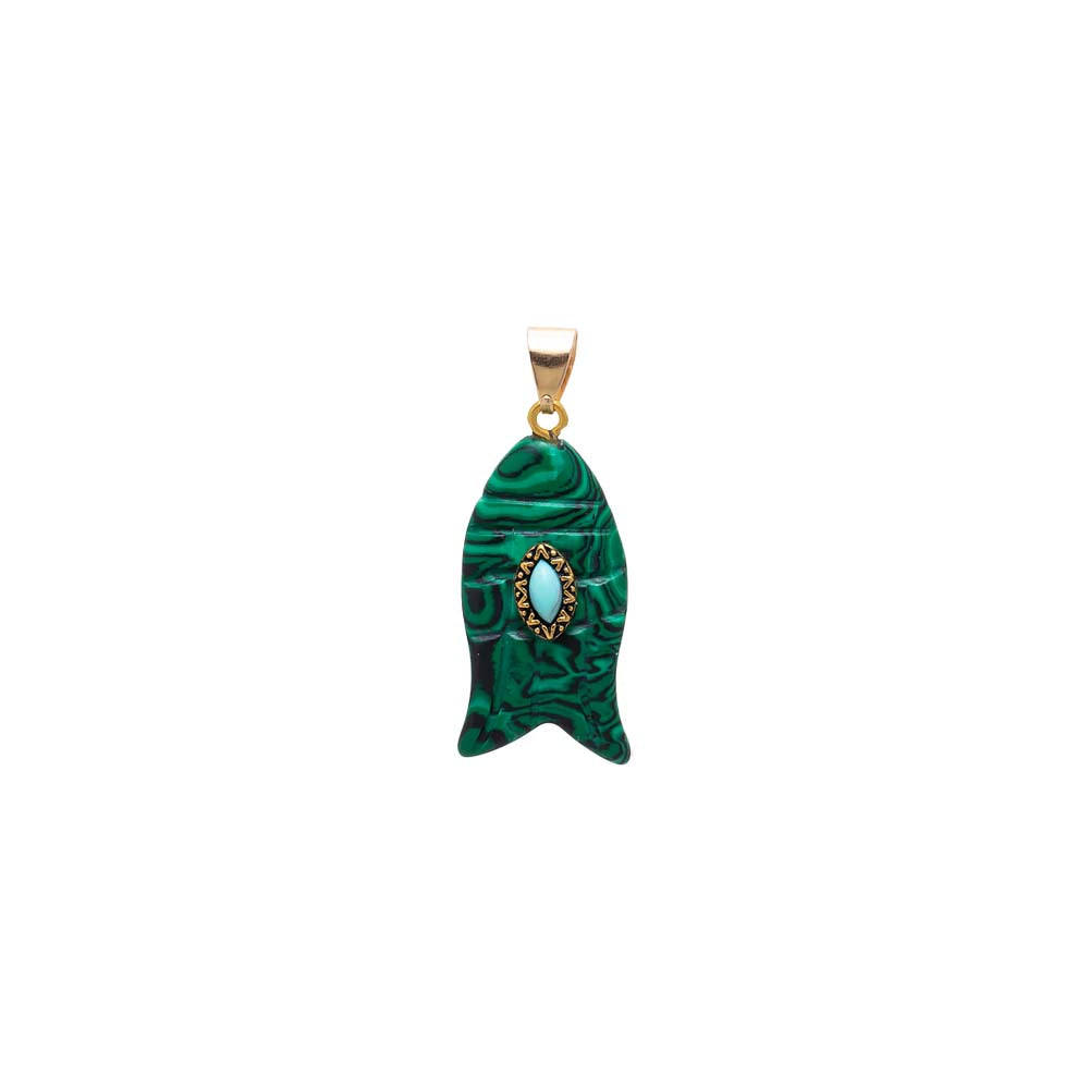 Add subtle glam to your fit with the Turquoise Marquise Natural Stone Fish Pendant by Adina Eden, a delicate yet bold Pendant. With graceful detail and bold tone options, this women's pendant is offered in Rose Quartz, Tiger Eye, Malachite, Turquoise and Mother of Pearl. From morning errands to evening events, this piece turns even your simplest outfit into a styled ensemble. Layer this gold plated pendant with accents from our Charms & Pendants collection for a finished outfit that feels totally you. It was made to match your real-life style, day in and day out.