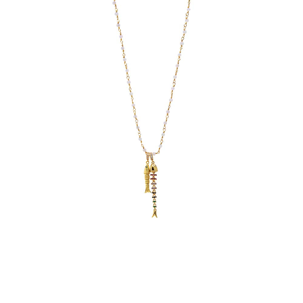Add statement appeal to your look with the White Beaded Double Fish Necklace by Adina Eden, a must-have Necklace. This necklace for women makes accessorizing easy with Gold options for every occasion. When comfort meets confidence, no matter the outfit, this piece offers that low-effort, high-reward finish we all love. Pair this gold plated necklace with selections from the Lariat Necklaces collection to make your everyday styling effortless. It's refined, reliable, and made to be styled again and again.
