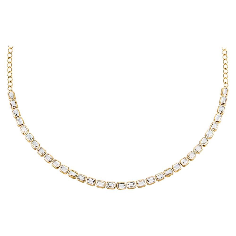 Make a seriously stylish statement in Adina Eden's White Topaz Baguette Tennis Choker, featuring a series of exquisite white topaz stones set into a 14K gold tennis chain. Perfect for any occasion - the relaxed fit of this gem makes it chic enough for everyday wear or the perfect starter piece for an elegant choker and chain layered look.