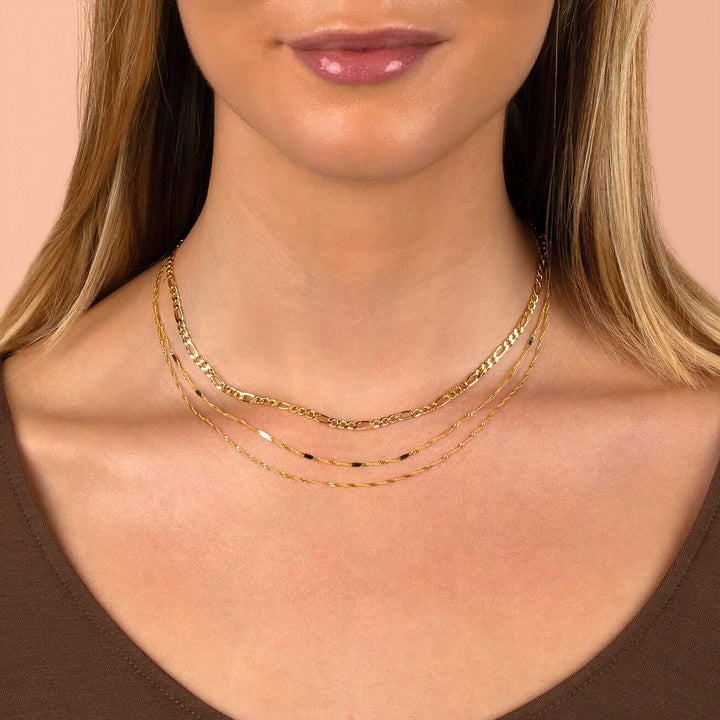 Make an elegant statement in Adina Eden's Wide Bar x Singapore Chain Necklace, featuring a chic 14K gold Singapore-styled chain that's adorned in petite bar pendants. This gem is the perfect finishing touch to your 14K layered look. Wear it night or day!