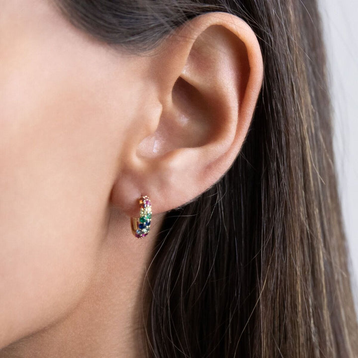 Embellished with two rows of shimmering pavé stones, Adina Eden's 'Wide Pavé' huggie earrings are built for shine. They're a great everyday earring and look especially chic stacked with other CZ earrings.