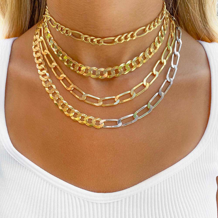 Adina Eden's Figaro choker updates the classic Figaro chain with large links and a cool hammered effect. Style this piece with dainty chains and a simple tee and you will make a unique statement.